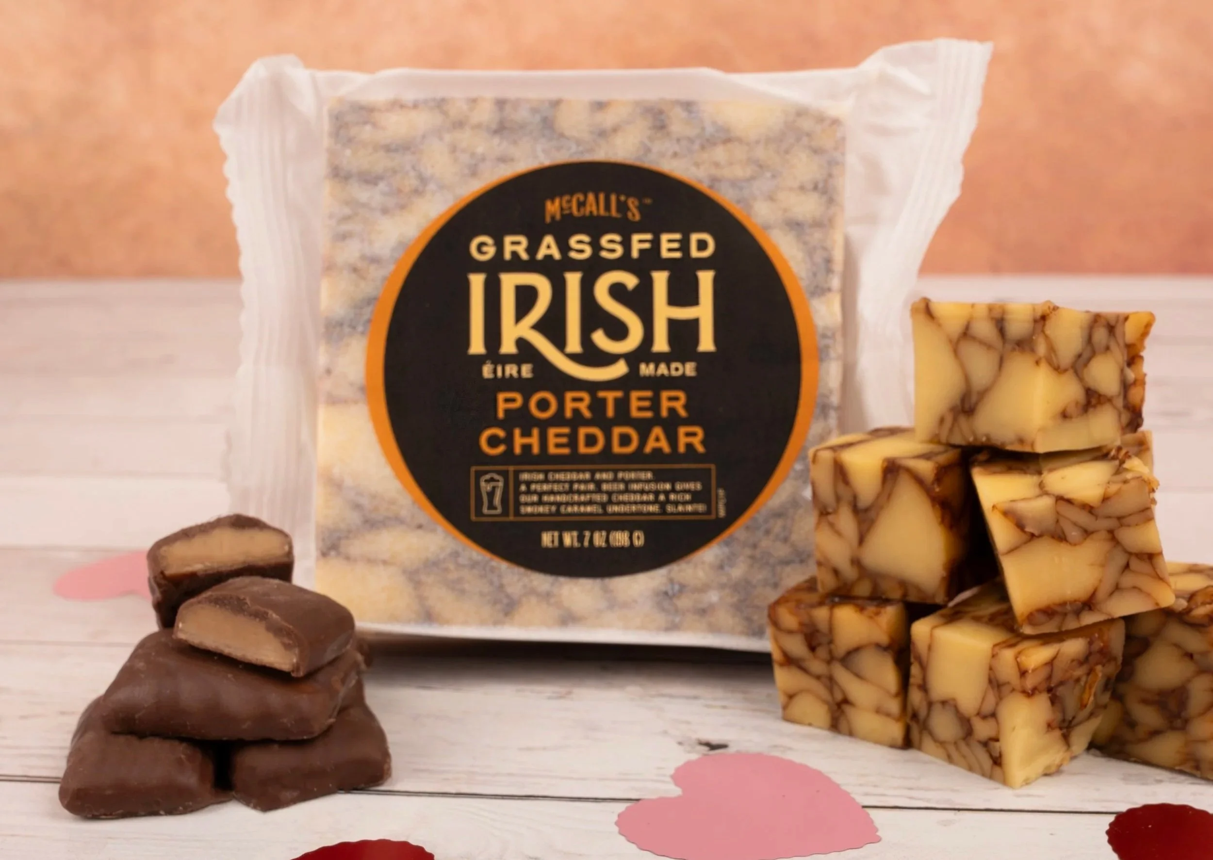 Toffee-studded chocolate brings crunch, sweetness, and warmth that pairs naturally with McCall’s Porter Cheddar. The subtle malty notes from the porter create a layered flavor experience, making this pairing especially satisfying for Valentine’s Day snacking or dessert boards.