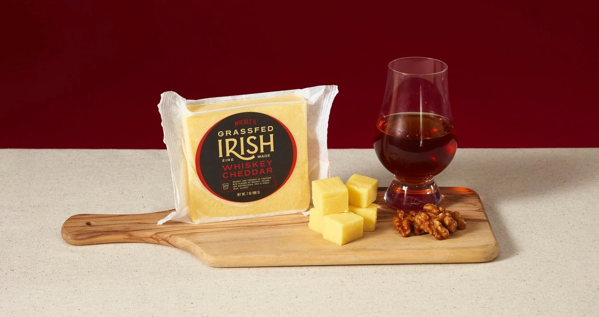 McCall’s Irish Whiskey Cheddar is a masterpiece of Irish tradition. Made with smooth Irish whiskey and milk from grass-fed cows, this ten-month-aged cheddar delivers the boldness you’d expect. With deep aromas of whiskey, butterscotch, and pecan, it’s a cheese that commands respect.