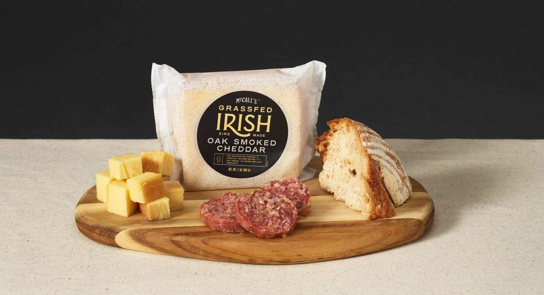 McCall’s Oak Smoked Irish Cheddar is a cheese worth your respect. Made from the milk of grass-fed cows, it’s smoked for 7 hours over oak and applewood chips, creating a subtle, natural smokiness that’s as authentic as it gets. Firm, smooth, and deeply satisfying, it’s perfect melted into a sandwich, on pizza, or enjoyed as is.