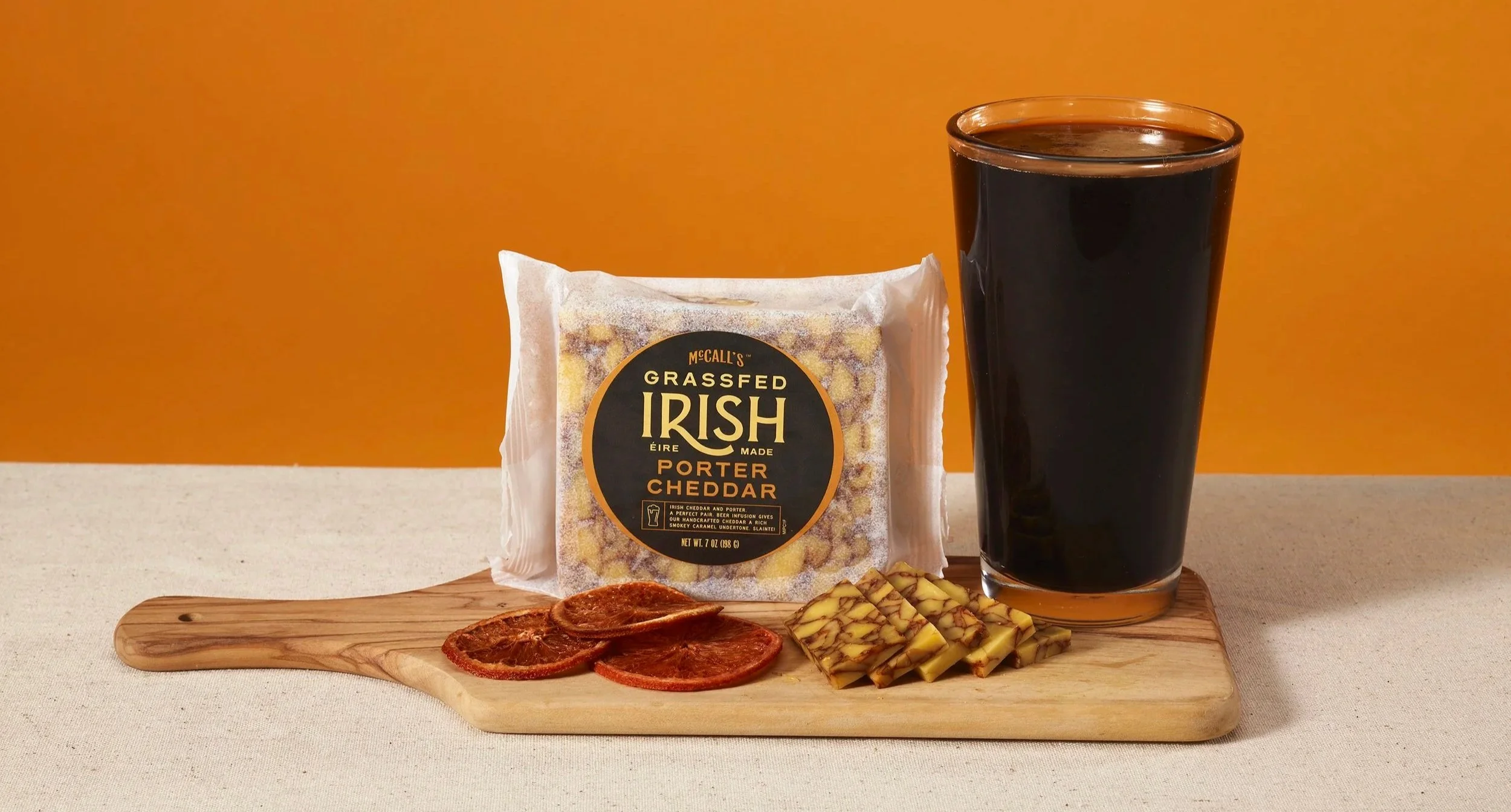 McCall’s Irish Porter Cheddar is bold, smooth, and unapologetically Irish. Made with grass-fed cows’ milk, aged 10 months, and infused with rich Irish Porter, it delivers smoky, caramel undertones and a striking marbled look. Perfect for any cheeseboard, this is cheese with true character.